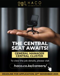 Interested applicants should forward copies of their application letters, academic and professional certificates, testimonials, up-to-date curriculum vitae to jobs@haco.co.ke  to be received not later than 17th November, 2025.