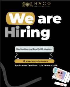 Interested applicants should to fill the pre- application forms below forward copies of their application letters, academic and professional certificates, testimonials, up-to-date curriculum vitae to jobs@haco.co.ke  to be received not later than January 12, 2025.